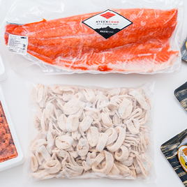 【大特価約40%オフ】超希少で超特大!「絶品サーモン&子持ちししゃも」に「九州産するめいか唐揚げ1kg&贅沢明太子1kg」ボリューム満点!【奇跡の逸品ぞろい海の幸セット】