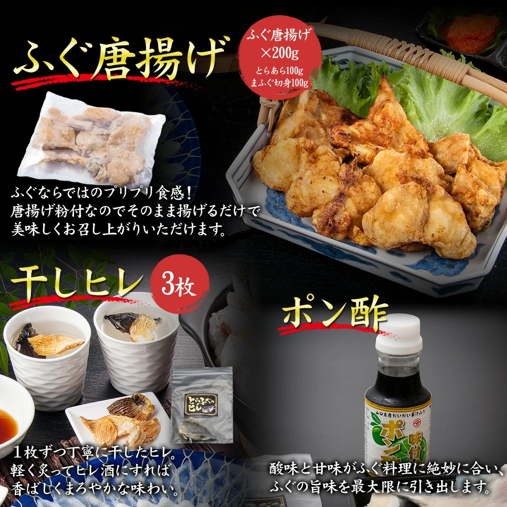 創業大正7年、皇室献上の実績もある、歴史と信頼を誇る下関市の老舗ふぐ問屋「吉田水産」から、「天然まふぐの刺身」が入った「豪華ふぐフルコース」が届きました。通常8,380円(送料・税込み)のところを、約20%OFFの5,980円(送料・税込み)でご提供!吉田水産は、仕入れから加工・出荷まで一元管理して行い安全安心で美味しいふぐをお届けします。北海道産の天然まふぐのお刺身、さらにはふぐちりは、ふぐ唐揚げもついてきます!お召し上がり方のしおりも封入しているため、初めての方も安心してご注文いただけます。ぜひご堪能ください!