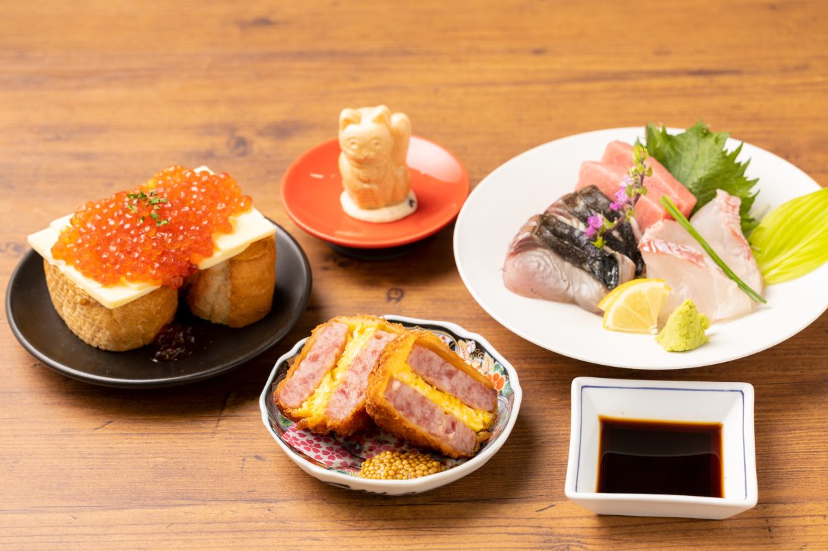 うどん居酒屋“唄う稲穂”の軽いおつまみなど、3店舗の名物料理を提供いたします。