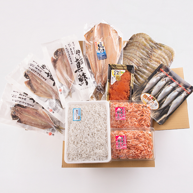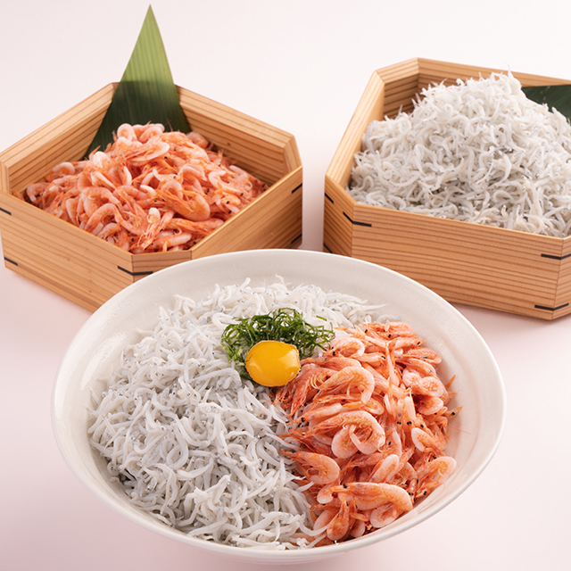 【駿河湾産釜揚げしらす】は、 〈直立不動で”立つ”〉程の鮮度の良さで身がしっかり。 魚体が白く、つややかでなめらか、のどごしがとても良いのが特徴です。【駿河湾産釜揚げ桜えび】は、 深海200mくらいで生息し物理的に水圧を受けていて旨みが凝縮。 噛むほどに広がる優しい旨みは絶品です。【静岡沼津加工真鯵の開き】は、あじ一筋50年の五十嵐水産が厳選した最高のあじを、水深2500mを超える日本一深い「駿河湾の海洋深層水」と西オーストラリアの天日塩「シャークベイソルト」の塩汁に漬け込み、最新技術「100年炭蔵」で干して旨味を凝縮。ふっくら、ジューシー、臭みもなく、おいしい最高品質のあじの開きです。