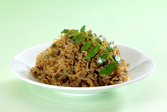 上質のちりめんじゃこを実山椒の香りで炊き上げ、仕上げに葉ざんしょうを混ぜることにより、香りが引きたてられています。