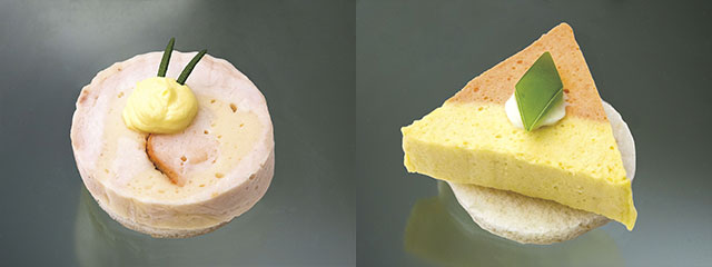 (左)白身魚ロール(右)森のきのこのテリーヌ