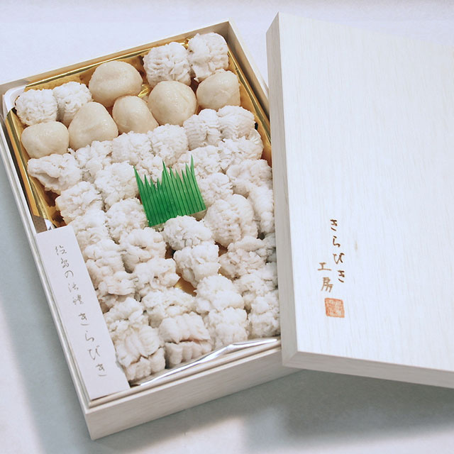 徳島でとれるハモの中でも高品質・高鮮度なものを厳選し、活き〆・骨切り加工した一級品にのみ冠せられるブランド「きらびきハモ」。