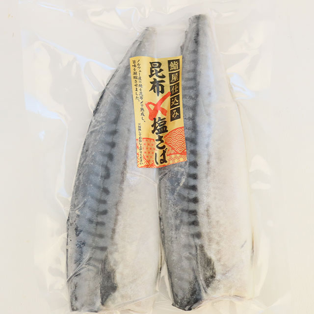 【昆布塩さば加熱用】さば(ノルウェー産)、食塩、昆布エキス、清酒、(一部にさばを含む)
