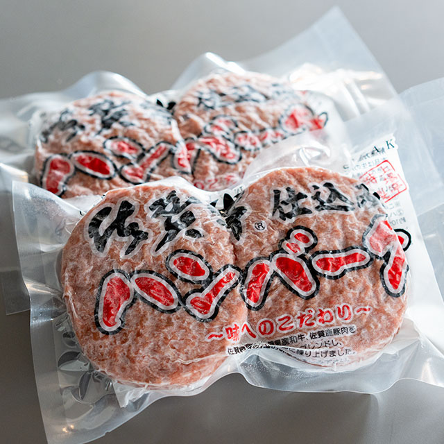【ハンバーグ】佐賀県が全国に誇るブランド牛の佐賀牛と佐賀産豚肉を合挽にした生ハンバーグです。その比率は佐賀牛85%佐賀産豚肉15%となっております。お肉の旨味を存分に味わってもらえるよう独自のスパイスをブレンドし、一つ一つ丁寧に練り上げました。佐賀牛の甘さと、ふんわり食感、ジューシーな肉汁をお楽しみいただける贅沢なハンバーグです。